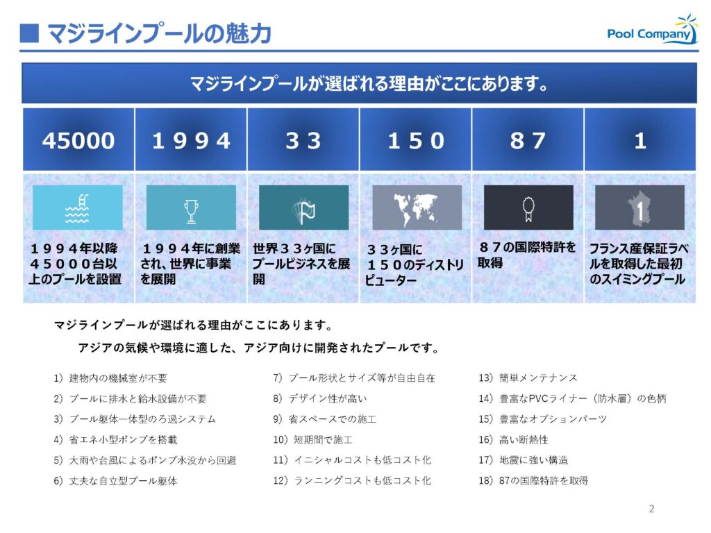 世界最高峰「マジラインプール」正規ディーラーの信頼